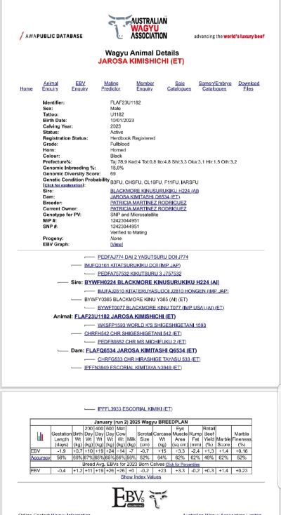 Venta de novillo 100x100 Wagyu Extraordinaria genética Inscrito en AWA. Hijo del toro H224 Ha hecho tres años en enero Una magnífica oportunidad de hacerse con un animal de una genética a la altura de muy pocos Cualquier duda consultar